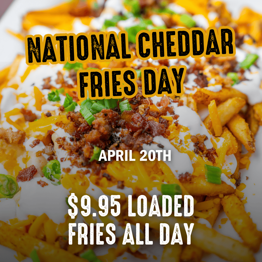 Celebrate National Cheddar Fries Day with $9.95 loaded fries all day!